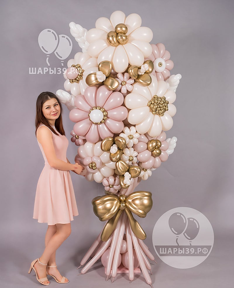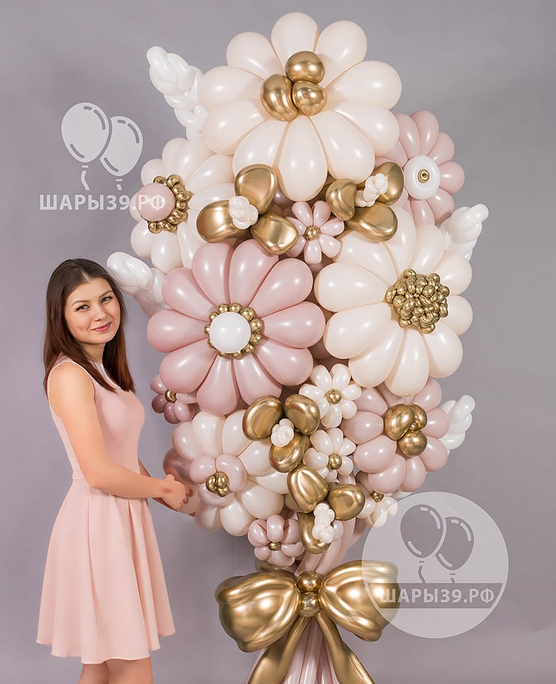 Премиум-композиция из шаров-цветов «Симфония нежности» — масштабный вау-букет в розовых и золотых оттенках. Объёмные цветы из воздушных шаров, акценты хрома и авторская сборка создают эффект роскошного подарка. Подходит для мамы, любимой или особенного события. Можно заказать с доставкой по Калининграду. Шары39 — профессиональная сборка и качественные материалы от чемпионов аэродизайна.