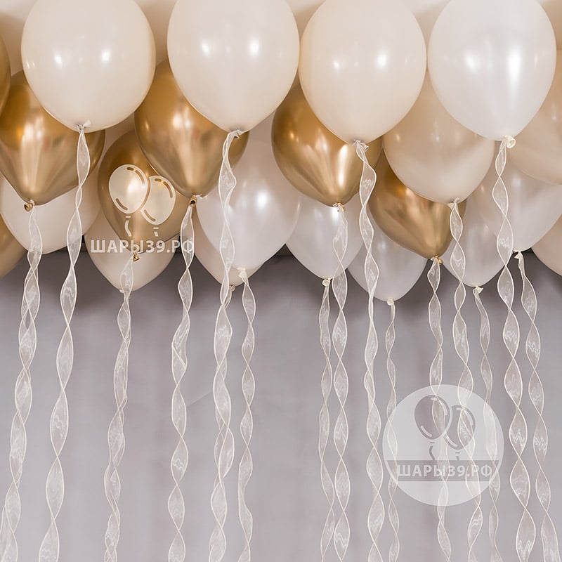 Набор гелиевых шаров под потолок с лентой из органзы «Золотая коллекция: Золотое облако» — это шикарное и лёгкое оформление пространства. Пастельные и хромовые гелиевые шары дополнены широкой струящейся лентой из органзы, создающей эффект мягких волн под потолком. Подходит для детского праздника, выписки, свадьбы, детского или взрослого дня рождения, либо фотосессии. Аккуратная сборка и бережная доставка по Калининграду от Шары39.