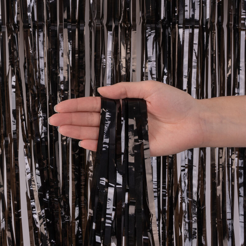 Примечание: размещенный на верхней части занавеса-гирлянды двусторонний скотч поможет максимально быстро и оперативно закрепить дождик при монтаже декора.