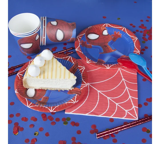 Красочная одноразовая посуда для яркой вечеринки с пауком станет дополнительным украшением торжества, а также поможет минимизировать время организации знаменательного события.