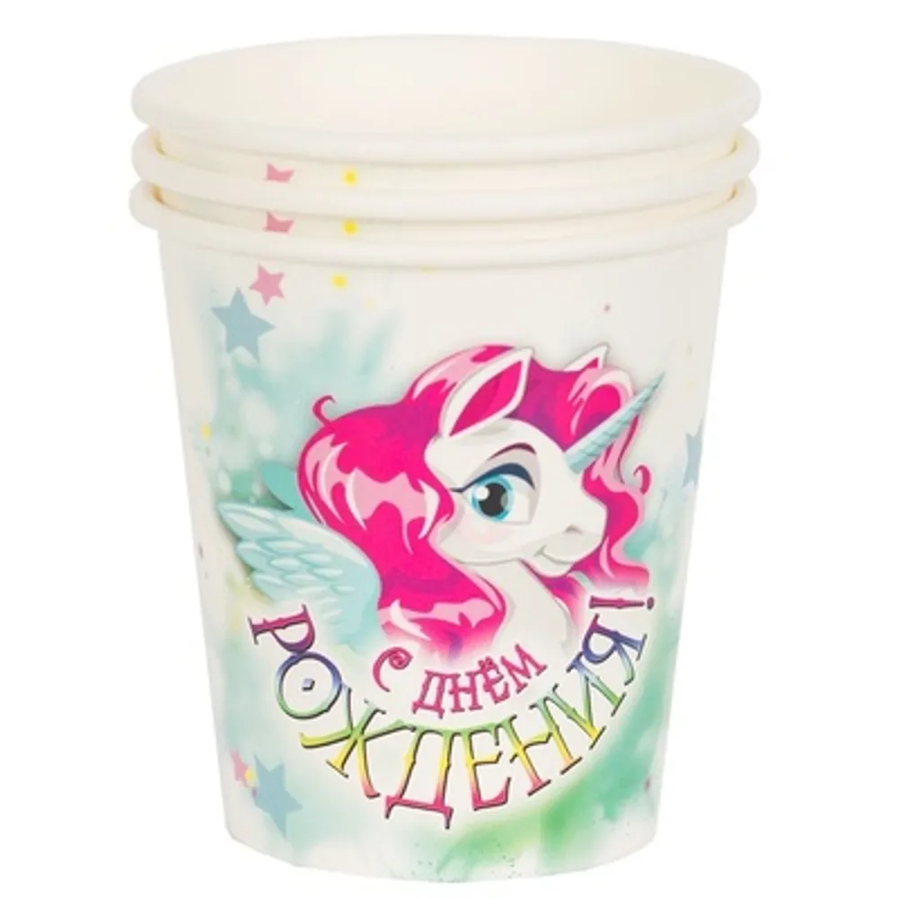 Красочная одноразовая посуда для любителей единорогов станет дополнительным украшением торжества, а также поможет минимизировать время организации знаменательного события.
