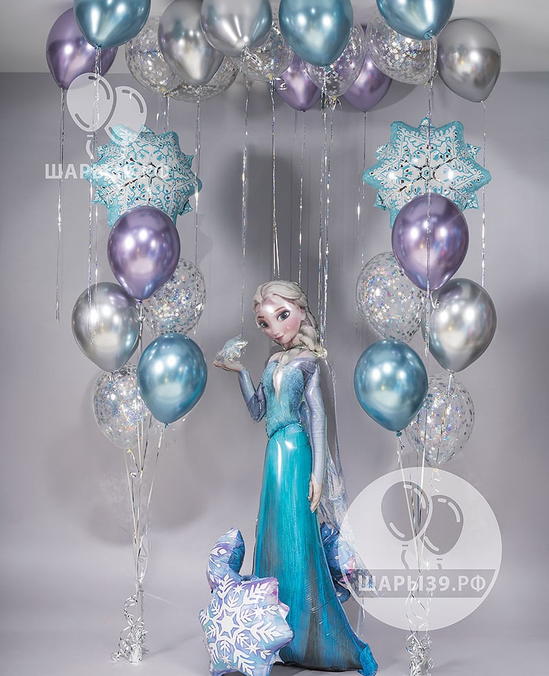 Комплект для оформления для девочки на день рождения воздушными шарами с любымим героем мультфильма «Холодное сердце»