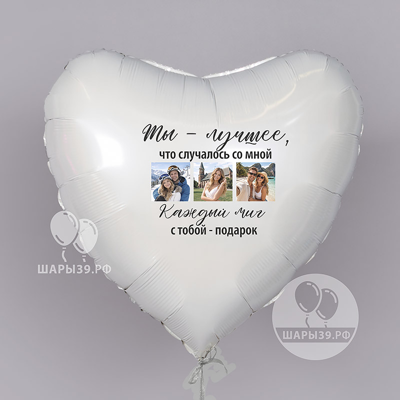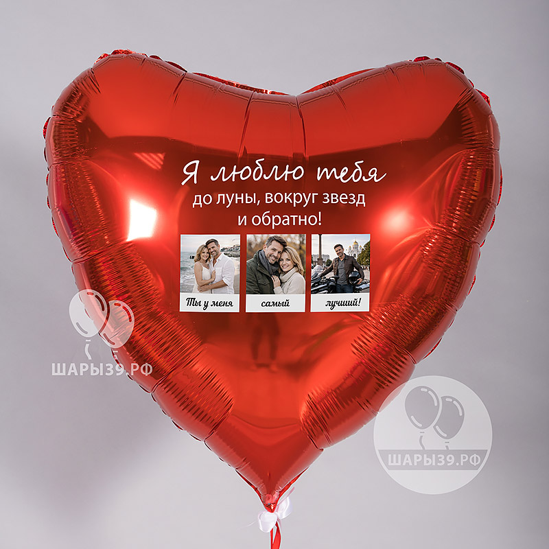 Надпись изготавливается из самоклеящейся пленки и наносится на надутый шар. 3 ваших фотографии мы распечатаем на самоклеящейся бумаге и наклеим на шар.