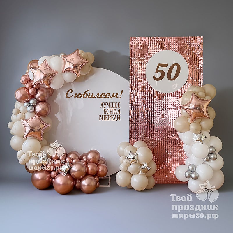 Фотозона декорирована гирляндой «органик» из воздушных шаров.