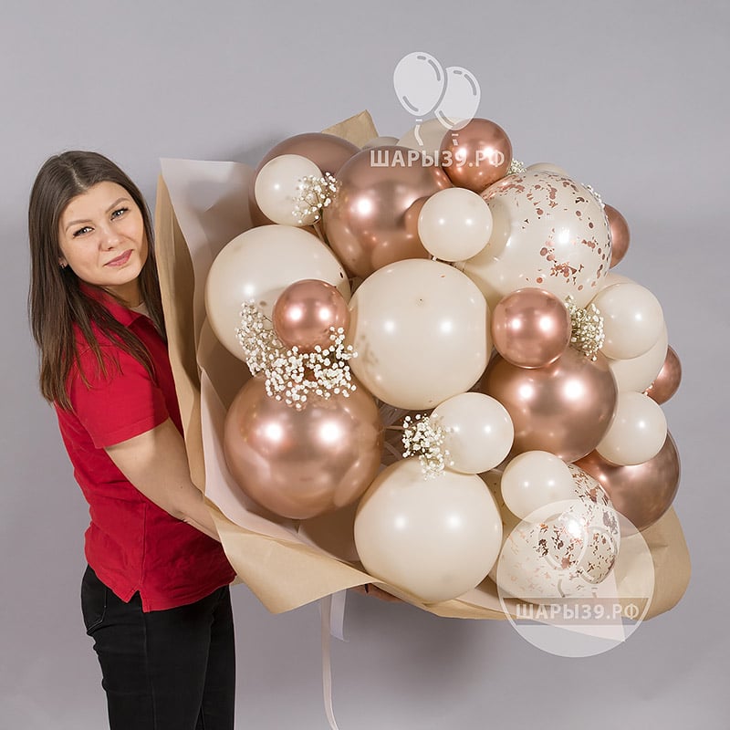 Экстра: Латексные шары 35-40шт, Упаковочная бумага, Лента), Живые цветы: Гипсофила