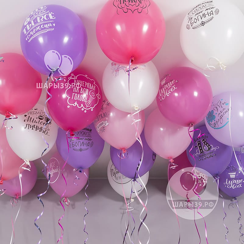 Шары с женскими приколами под потолок — это лёгкий способ добавить юмор и настроение на праздник. Розовые, сиреневые и белые гелиевые шары с весёлыми надписями создают эффект яркого потолочного оформления. Идеально для девичника, дня рождения или сюрприза подруге. Можно заказать с доставкой по Калининграду. Шары39 — аккуратная сборка и качественный гелий.