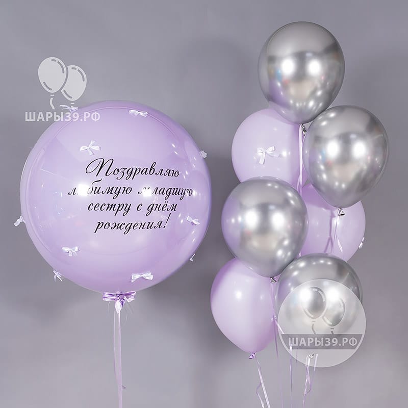 Премиум: «Стеклянный» шар 60см с бантами и принтом, 2 фонтана (Пастель с 3 бантами -3, Хром -4, атласные ленты)