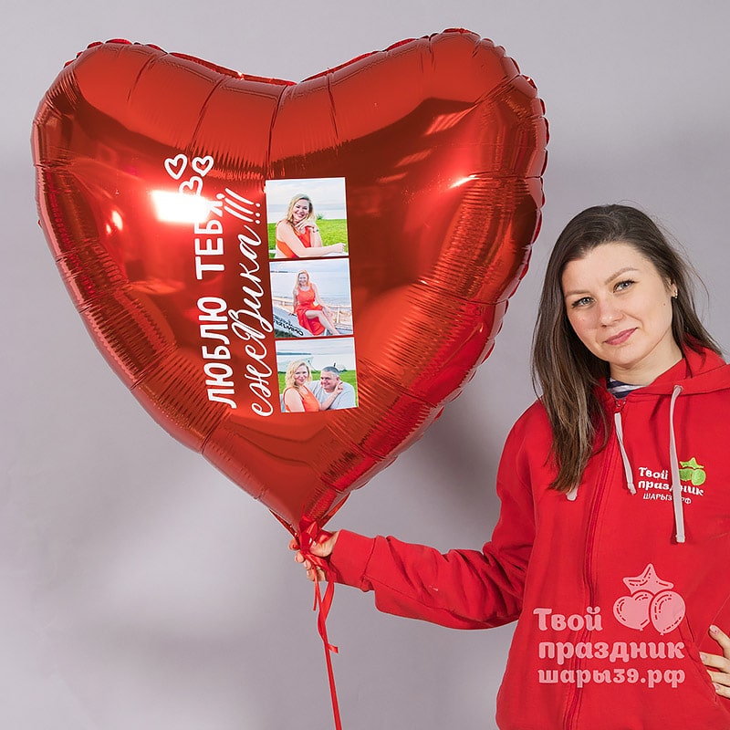 Большой фольгированный шар, наполненный гелием, с фотографией и индивидуальной надписью!