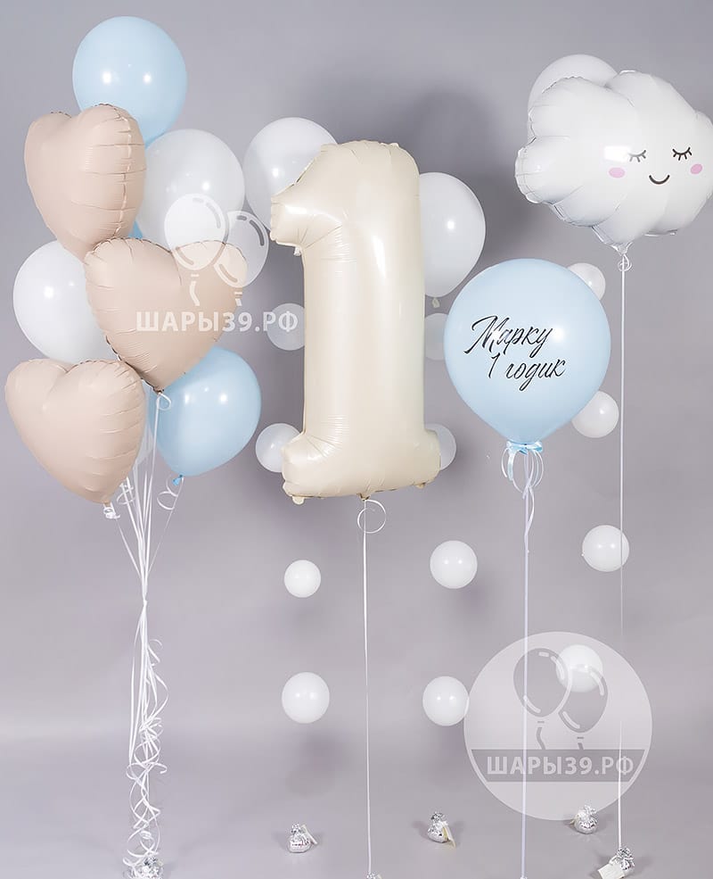 Набор шаров «Облачная нежность» создаёт мягкую атмосферу тепла и воздушности. В композицию входят фонтан из пастельных шаров голубого и белого оттенков с тремя сердцами 45 см, большая цифра 102 см, облачко на грузике и шар 45 см с индивидуальным принтом. Нити/капли и пакеты добавляют декоративный акцент. Подходит для первого дня рождения, фотозоны и домашних праздников. Доставка Шары39 по Калининграду.