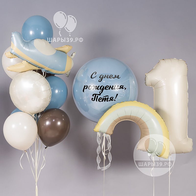 «Маленький герой: Сказка для малыша» — нежная композиция в пастельных оттенках ретро-голубого, белого песка и шоколада. В набор входит фонтан с фигурой самолёта и кругом 45 см, большой «стеклянный» шар 60 см с принтом, ретро-радуга и мишка на грузиках. Оформление создаёт атмосферу тепла, света и сказочного настроения, идеально подходит для первых праздников, фотозоны или украшения детской комнаты. Шары39 доставит набор по Калининграду аккуратно и вовремя.